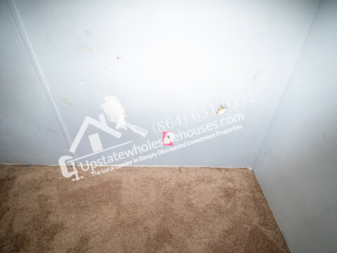 - Bedroom #3 (11′ X 13′) – Contains carpet flooring in need of replacement. Contains one large hole on one wall. It will need minor repairs as well as cosmetic work. The ceiling is in fair condition. No other known issues.