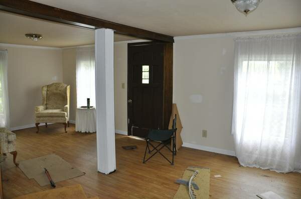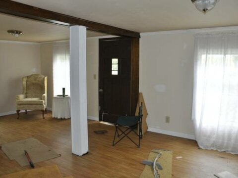 Living space is (10′ x 11′) and (11′ x 15′) Floor needs to be finished, walls and ceiling need to be painted.